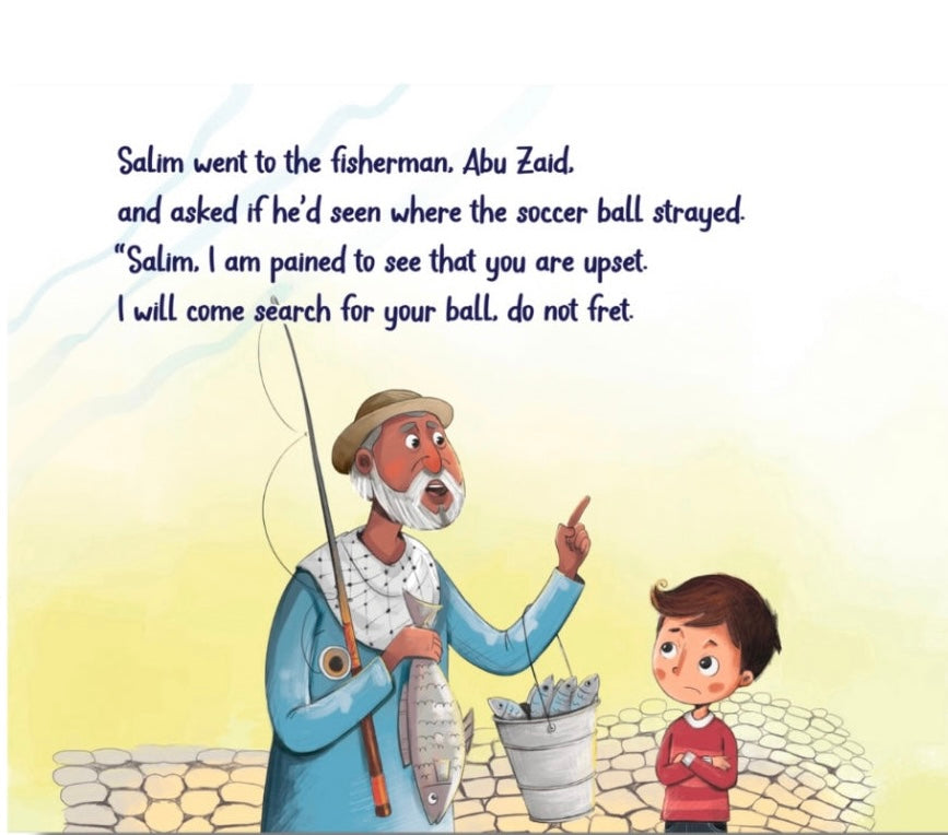 In this story, Salim loses his soccer ball and embarks on a journey across his beautiful village in Palestine, learning lessons from members of his community along the way. Hard cover. 58 pages. Good for kids 6+ years old.