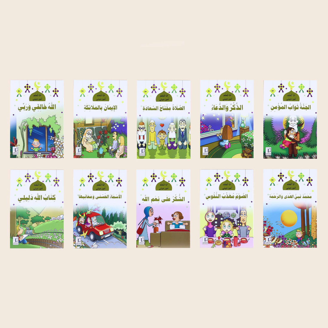 The “I am learning about my religion” series (10 books) aims to introduce our children to God Almighty, His Most Beautiful Names, and His ability (Glory be to Him) to create this existence, including the beings in it, starting with angels and humans, all the way to animals. It also seeks to teach the child the value of remembrance, supplication, and gratitude. God for all His blessings, without forgetting the basic acts of worship through which one communicates with God Almighty.